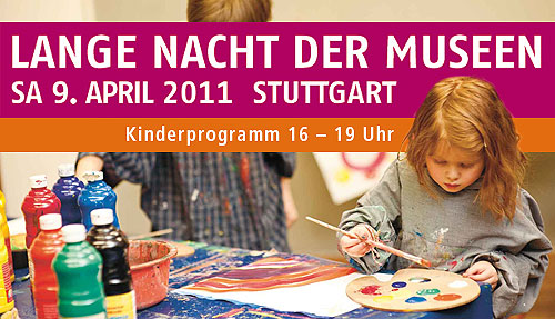 Im Rahmen der Langen Nacht der Museen am 9.4.2011 in Stuttgart gab es ein vielseitiges Rahmenprogramm für Kinder. Die mußten natürlich nicht bis in die Nacht hinein aufbleiben, sondern konnten schon am Nachmittag aktiv werden. Auch 2011 war die Lange Nacht der Museen wieder ein voller Erfolg.